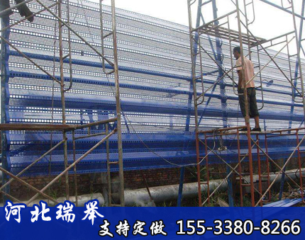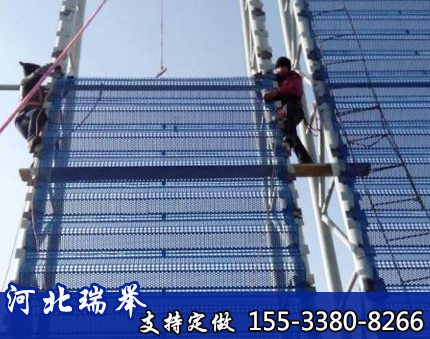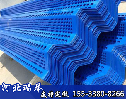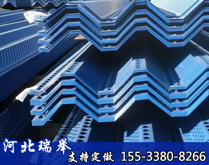 金屬擋風抑塵板擋風板嚴格定位其結構、形狀、厚度及孔形、孔徑、開孔率,設計合理,當風通過擋風板時產生了湍流動量交換和能量損失,迅速降低大氣來流的風速,降低了堆料表麵的氣流壓力和剪切應力,因而降低了風對粉塵的攜帶能力,減少堆料的起塵率,從而達到擋風、抑塵治理環境的目的。